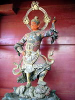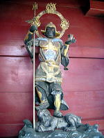 多聞天は北方を守護すると共に、北倶盧洲の守護神でもあり北方天ともいわれます。単独で信仰されるときは毘沙門天の名で呼ばれています。ヒンドゥー教の財宝神クヴェーラと同じ神です。