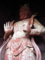 上半身は裸で腰には短めの桾を付けています。口を結んだ「吽」の忿怒相で、密教では「吽」は心が生じる源が帰着する智徳を意味するものとして、大変大事にしています。