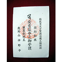 | カラス天狗木彫御守 | 烏枢沙摩明王札 |