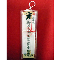| 徳川将軍家が信仰した大黒様が当山の道場に祀られています。その大黒様の持ち物をかたどり、年間365体限定で授与しております。ご利益は、社運隆盛・商売繁昌・福徳自在などです。 | 海上安全・水上安全・船舶安全のお札です |