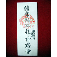 | 「とげ」とは、病一般の事です。このとげをぬく為のお札です。 | 蛇を除けたい方が懐中するお守りです。 |