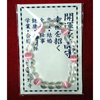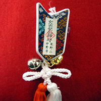 | 懐中している方に災いがおきた時、代りに木札が割れて身代りになって頂けるお守りです。橙色、紫色、薄桃色の3種類。 | |